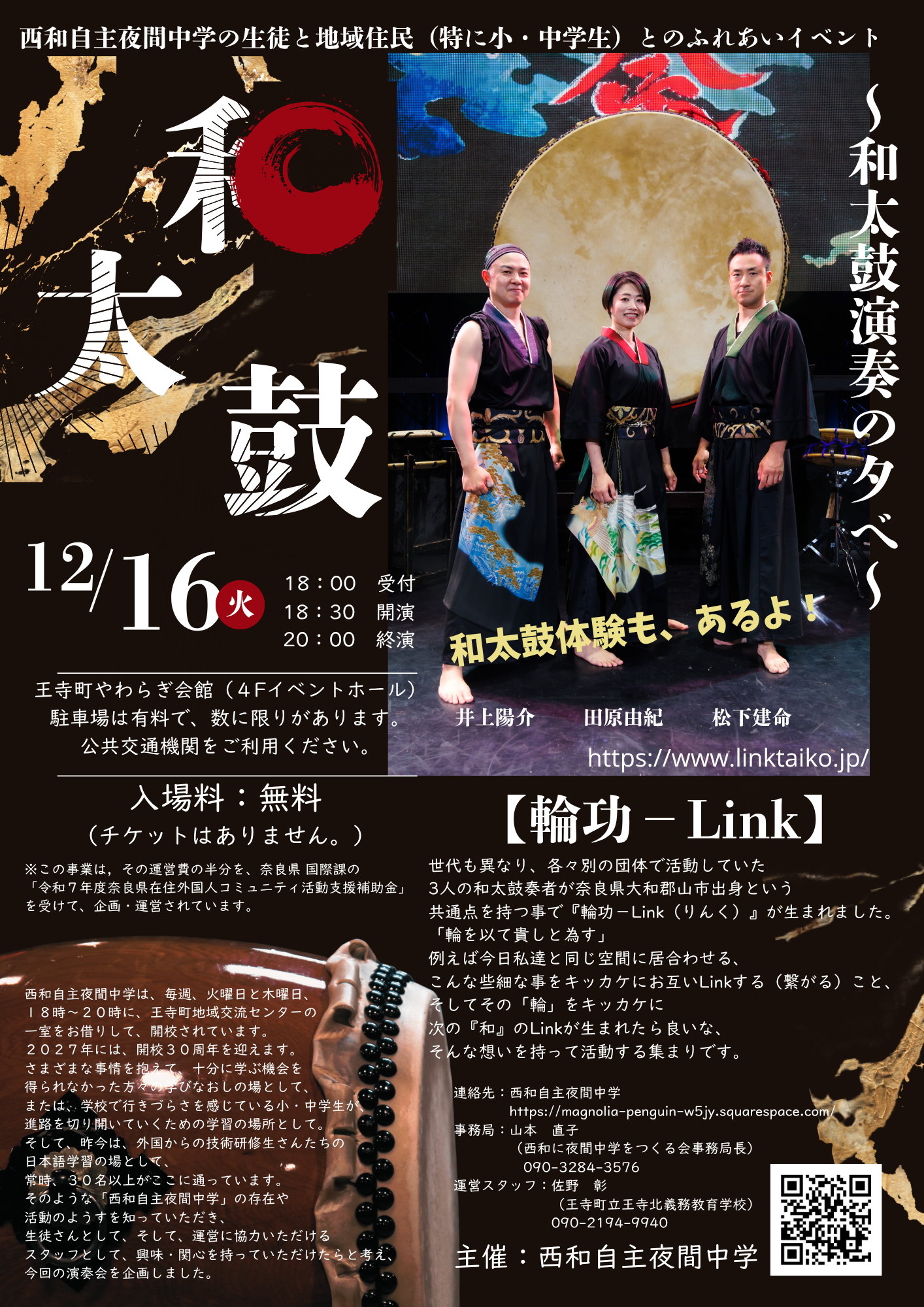 1995年より奈良県の明日香村を拠点に活動している和太鼓集団「倭 YAMATO」のメンバーとして参加。「倭」の中心的な演奏者として世界50カ国以上で2500回以上の劇場公演を行ってきた。